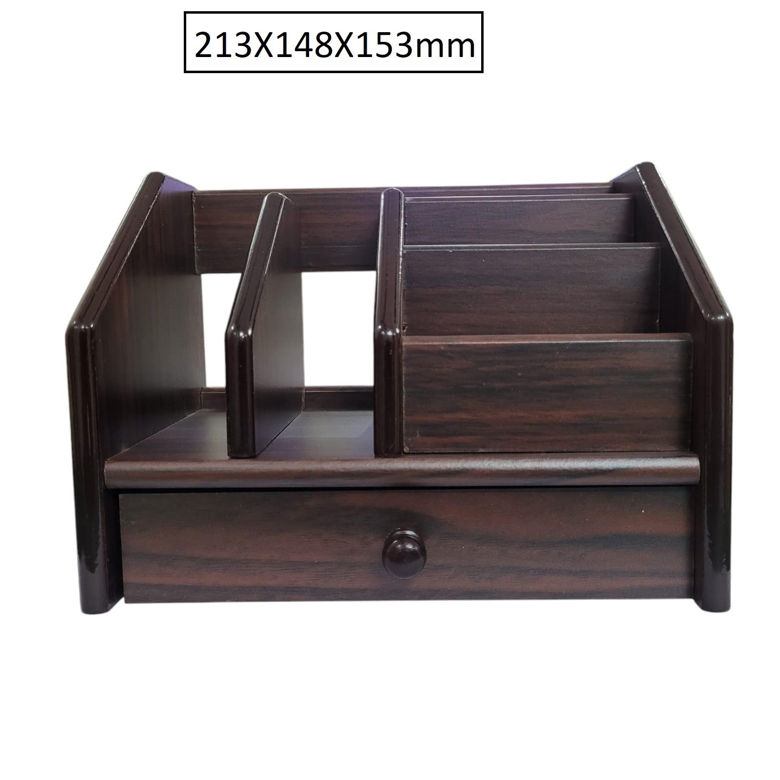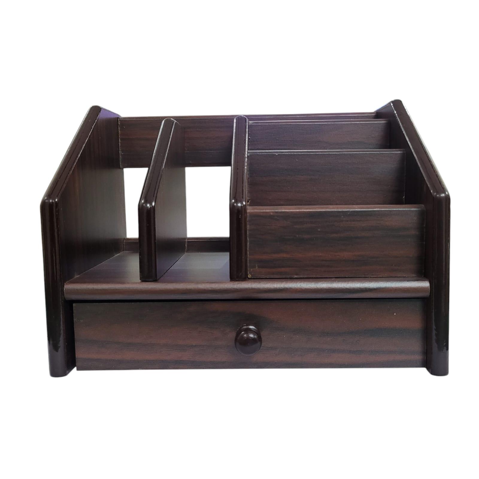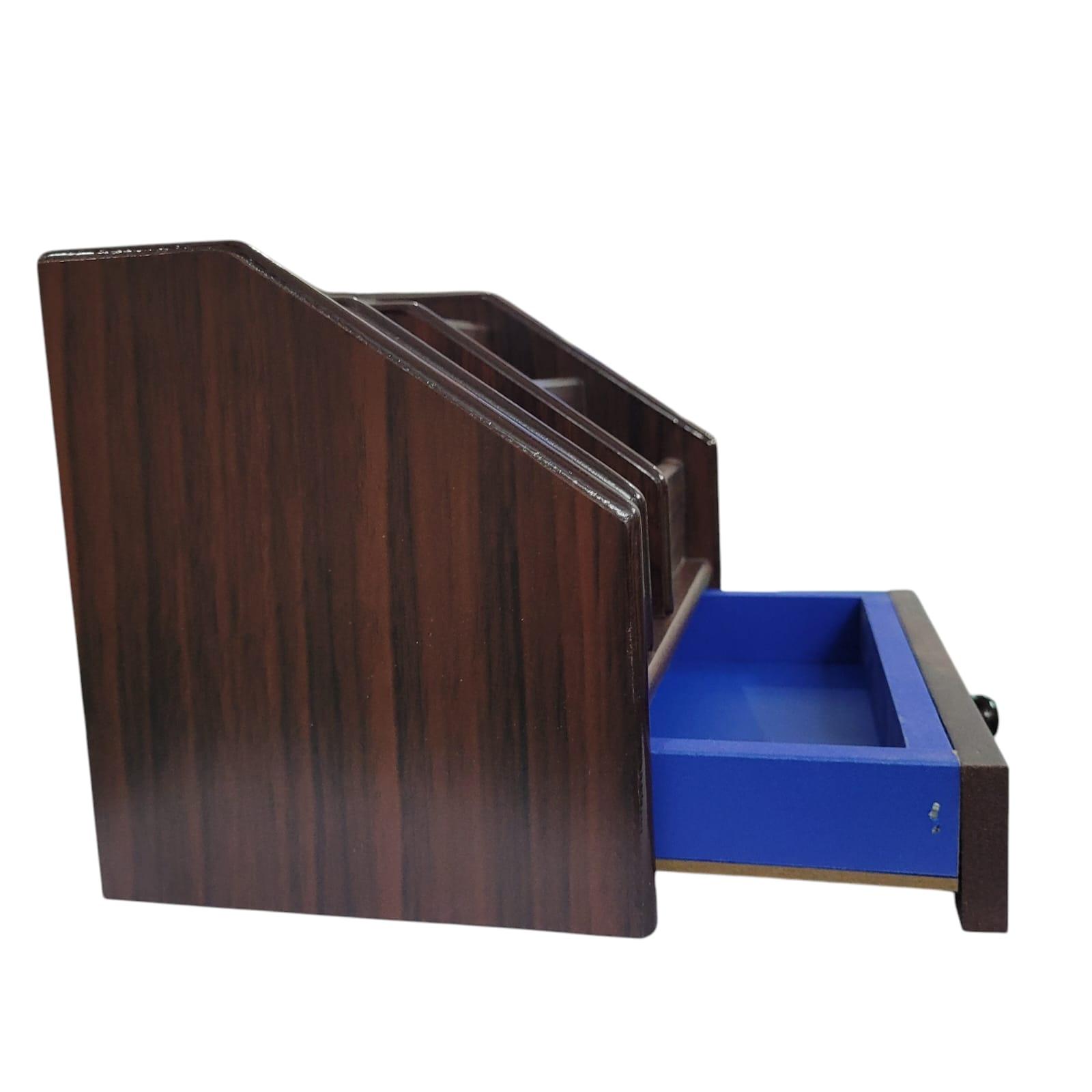Organize your workspace with this versatile Wooden Pen & Pencil Stand with Drawer. Crafted for functionality and style, this stationery organizer is perfect for office professionals, students, or anyone looking to keep their desk tidy. Featuring a compact design, it includes a built-in drawer for extra storage and a convenient mobile holder, making it the ultimate desk accessory. Durable and elegant, this wooden stand blends seamlessly into any decor while keeping your essentials within easy reach.